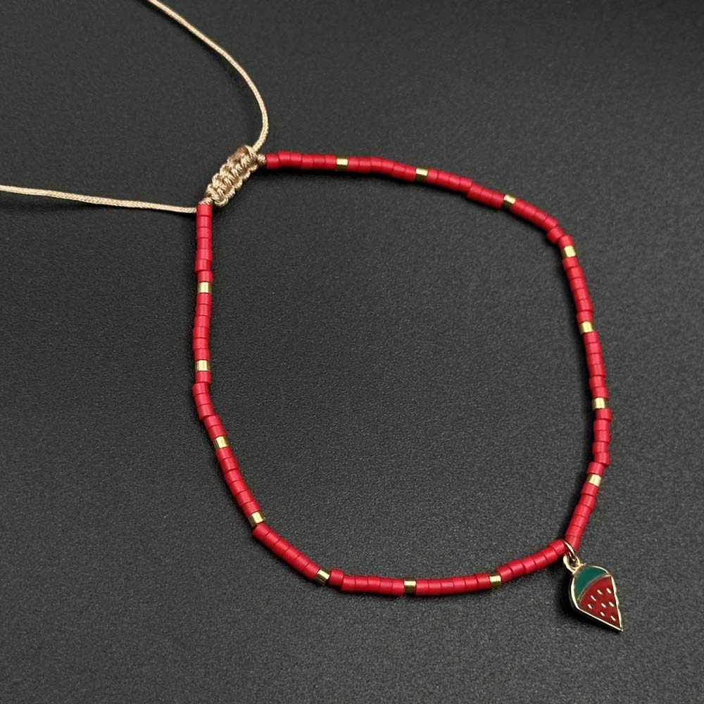 دستبند بافت قرمز آویز هندوانه مینا قرمز و سبز