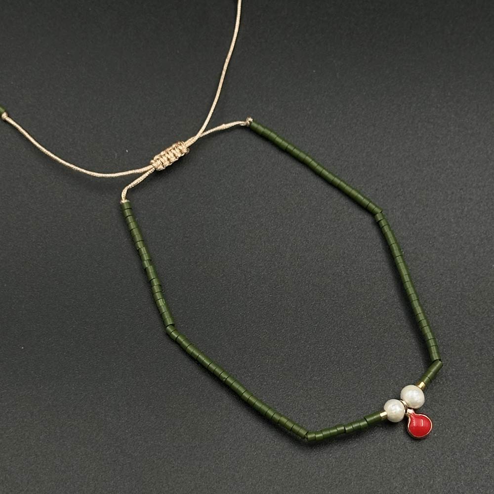 دستبند بافت انار مینا قرمز و مروارید