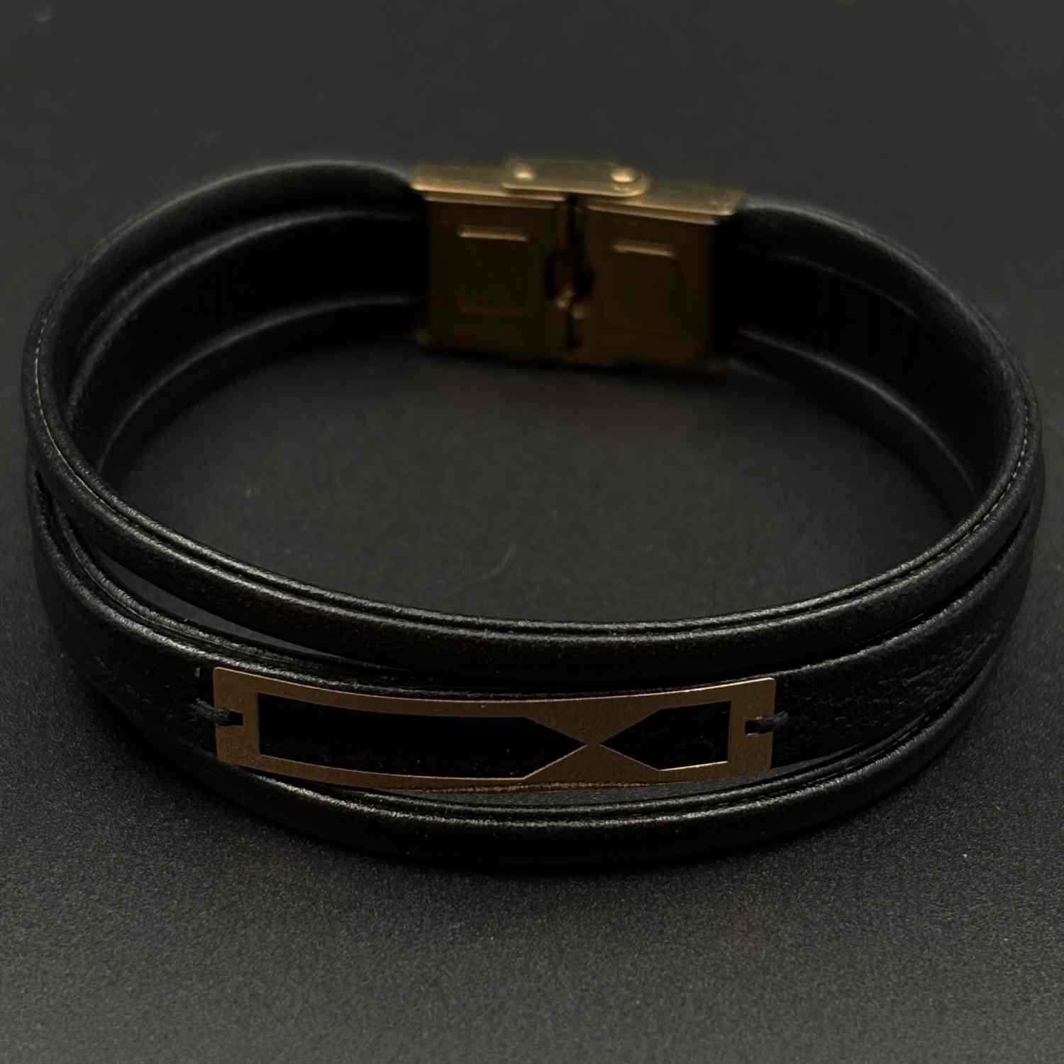 دستبند چرم مشکی دو ذوزنقه
