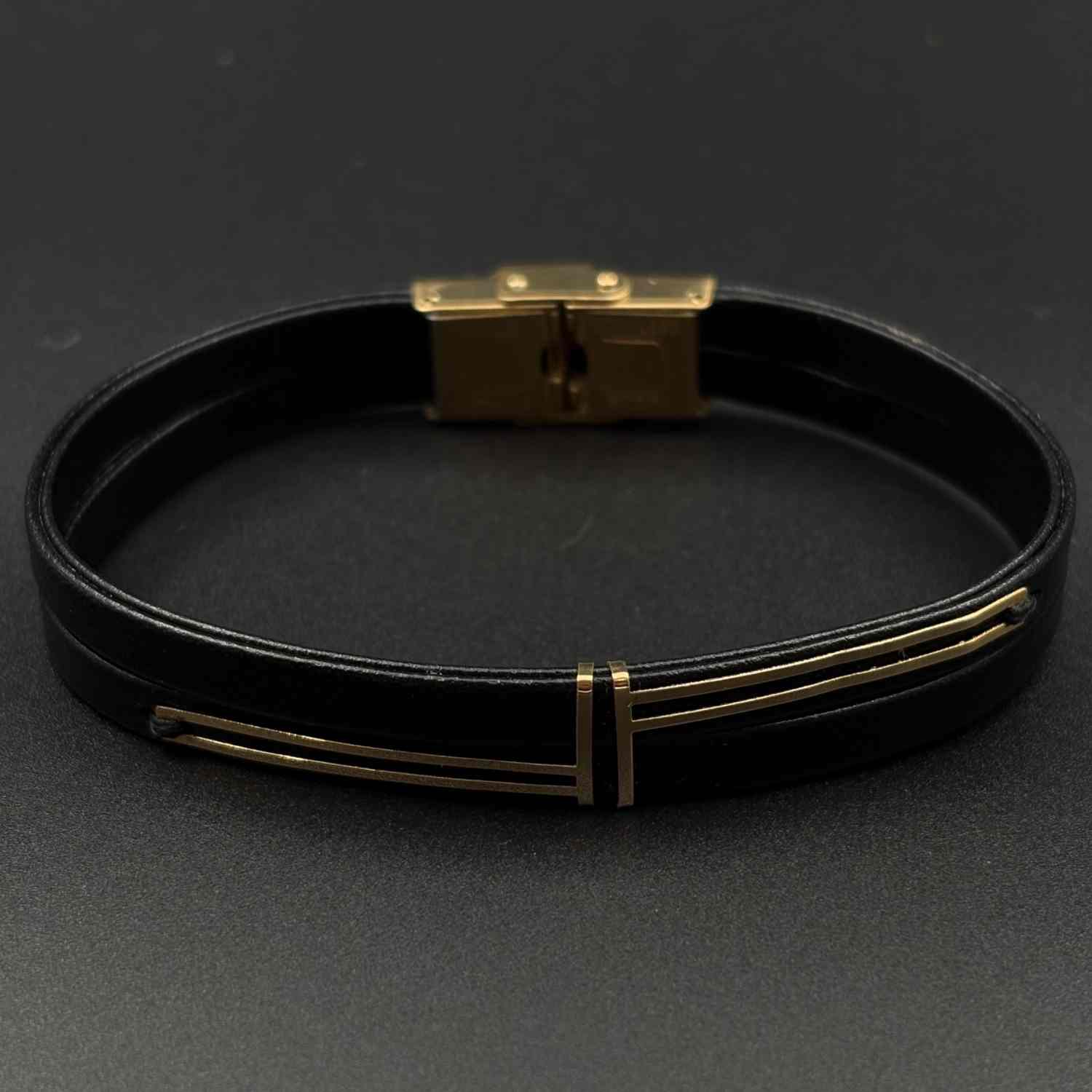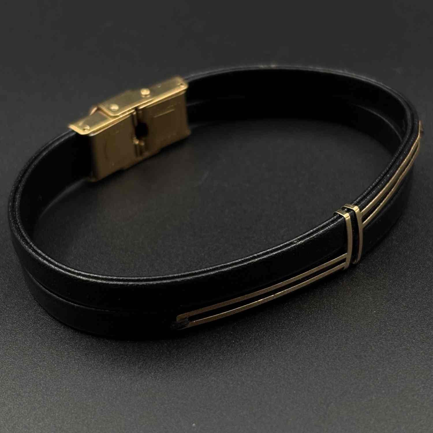 دستبند چرم مشکی دو پرچم کمربندی