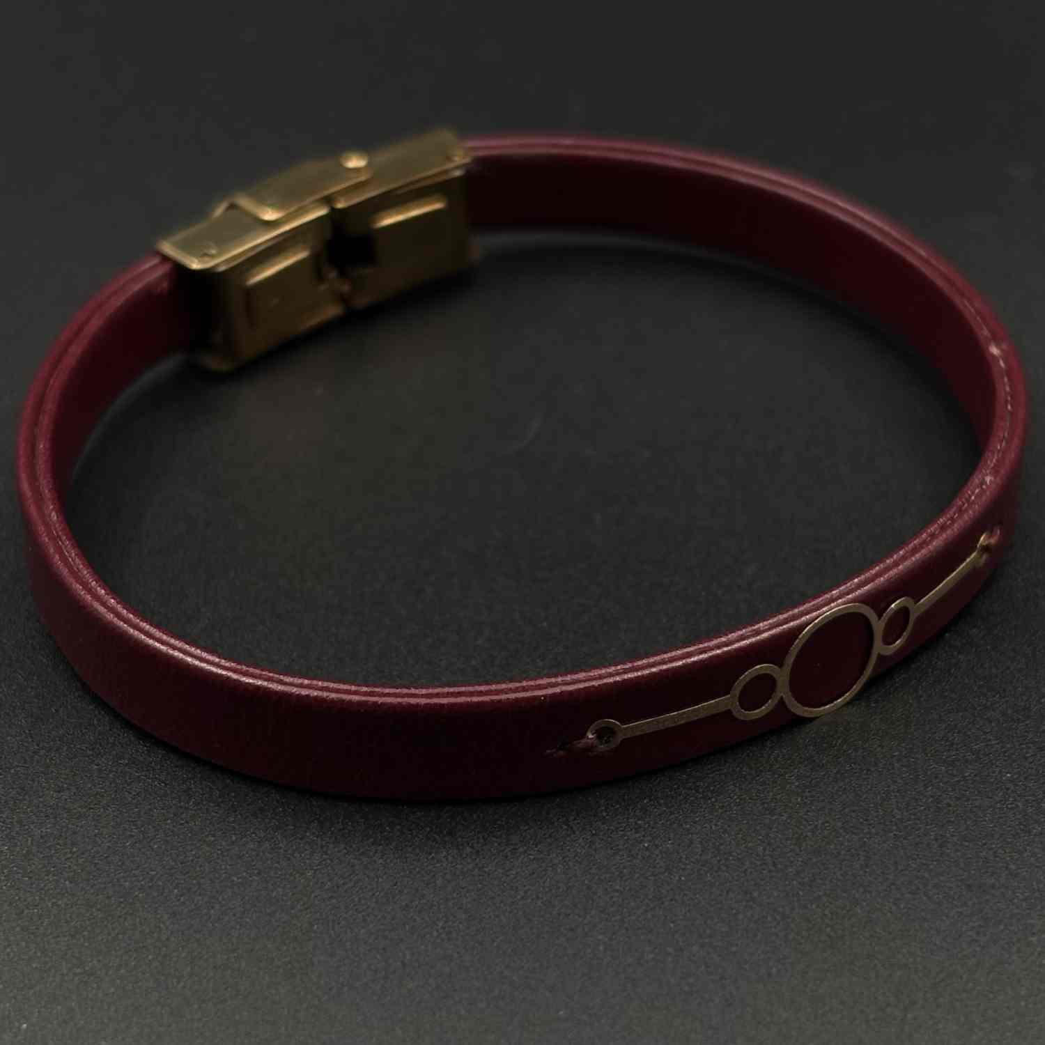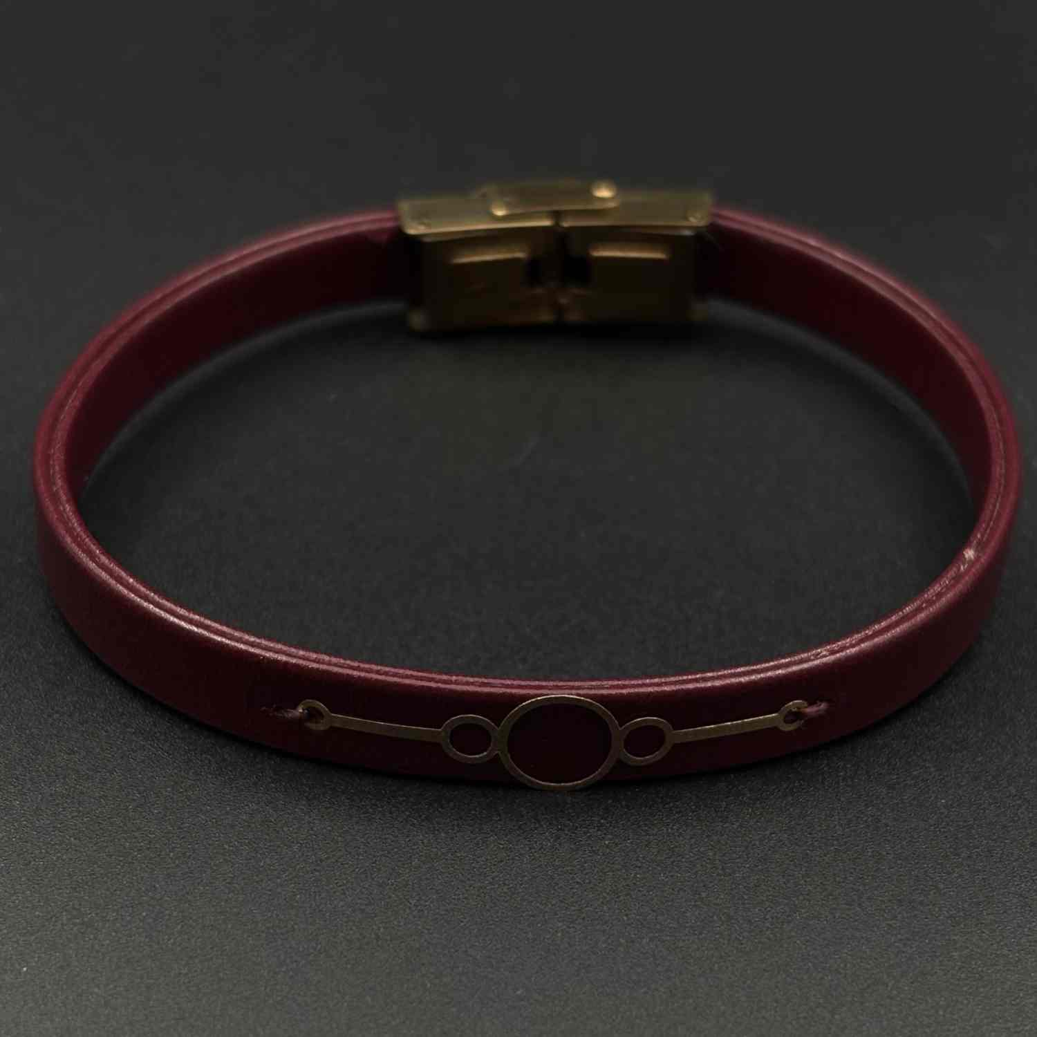 دستبند چرم زرشکی سه دایره