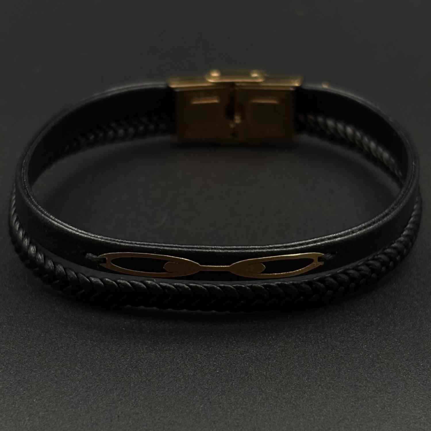 دستبند چرم مشکی ظریف دو بیضی