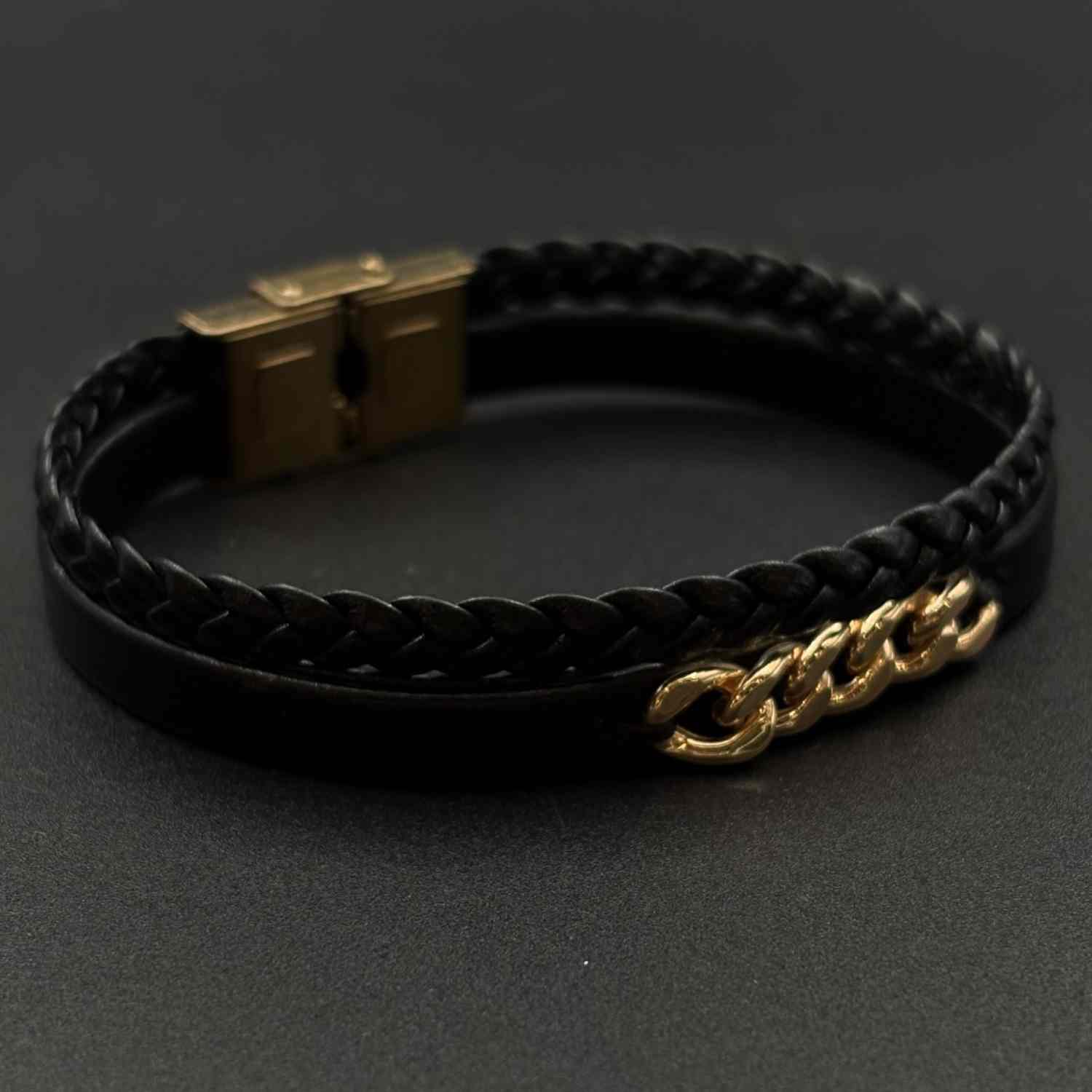 دستبند چرم مشکی کارتیه 5 حلقه