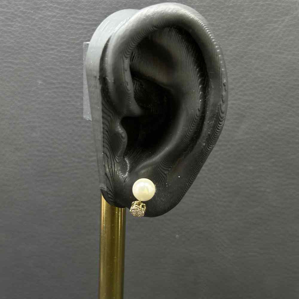 گوشواره مروارید آویز گل نگین دار